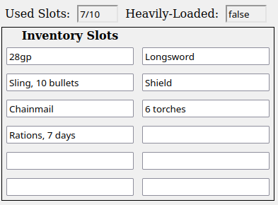 Your character can carry 10 slots without any penalties and may carry up to a maximum of 12 slots. Carrying more than 10 slots reduces your character's movement speed by 10ft.